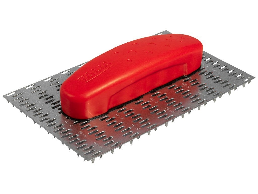 Poignée plastique ergonomique pour une meilleure prise en main et un nettoyage rapide. 3 vis de fixation de la poignée sur les semelles. Semelle connecteur (tôle emboutie) interchangeable. Planéité contrôlée 2 types de pointes : douces : 240 pointes longueur 15 mm, agressives : 480 pointes longueur 8 mm, agressives : 640 pointes longueur 8 mm.